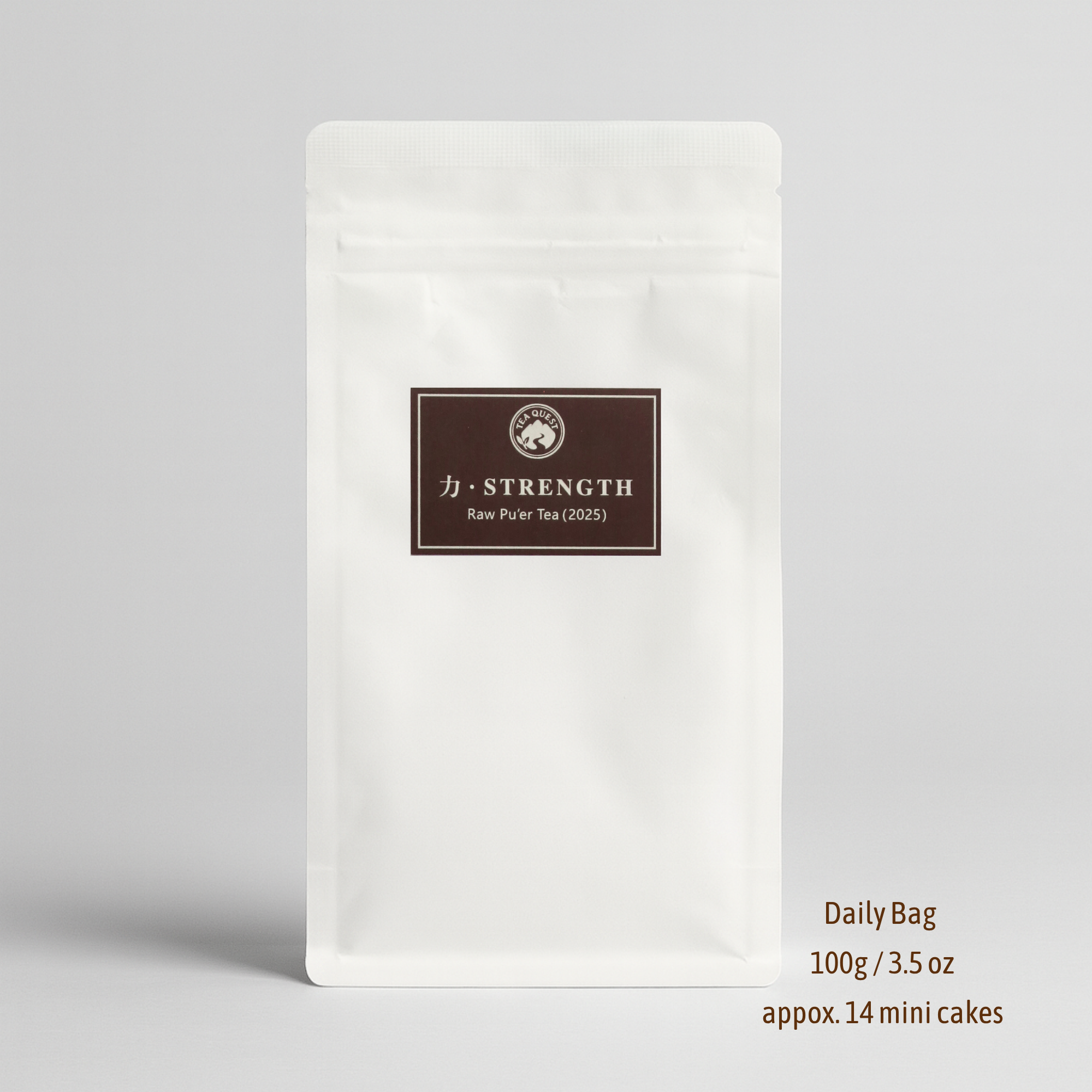From Jingmai Mountain in Yunnan — home to ancient tea forests and one of the world’s most celebrated Pu-erh terroirs — Strength is a young raw Pu-erh crafted from old-tree leaves rooted in rainforest soil.